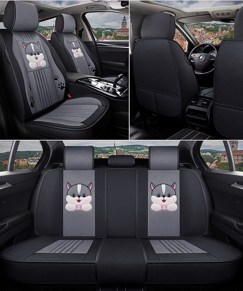 ブラント2021新型リンネル自動車クッション秋冬自動車シートカバークッション四季通用全カバー布地刺繍漫画萌え可愛いぬいぐるみシートカバーカバーカバーカバーカバー新型フルバック-優雅な灰-標準版-5席はCRVアコードXRDV凌派の鋒飛度思Pt睿来福味噌イギリス派に適用...