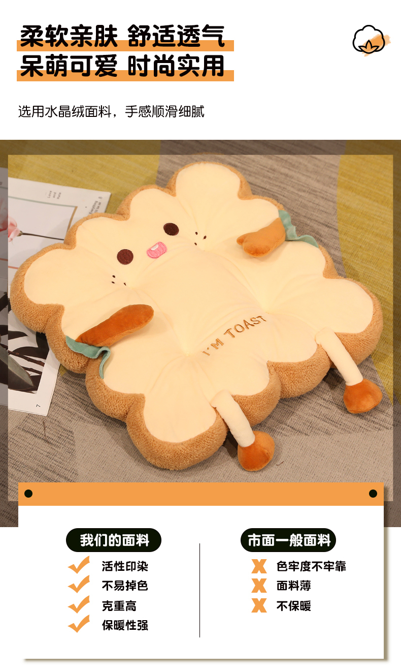 かわいいトーストクッションクッションクッションクッションクッションアフィイスクッション学生用クッションベッドルームの床の上のお尻マットの窓の角にある歯のサイズを詳細図(底の滑り止め)に示します。