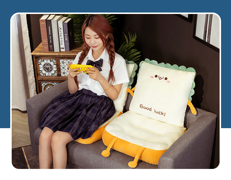 蘭婷紀かわいいトースト座布団屁パッド厚め椅子座布団車用増高シートクッションオフィス座布団背もたれ一体丸目かわいい(座布団+クッション)40 X 45 cm(底部滑り止めロープ付き)